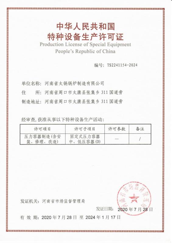 • 特種設(shè)備生產(chǎn)許可證